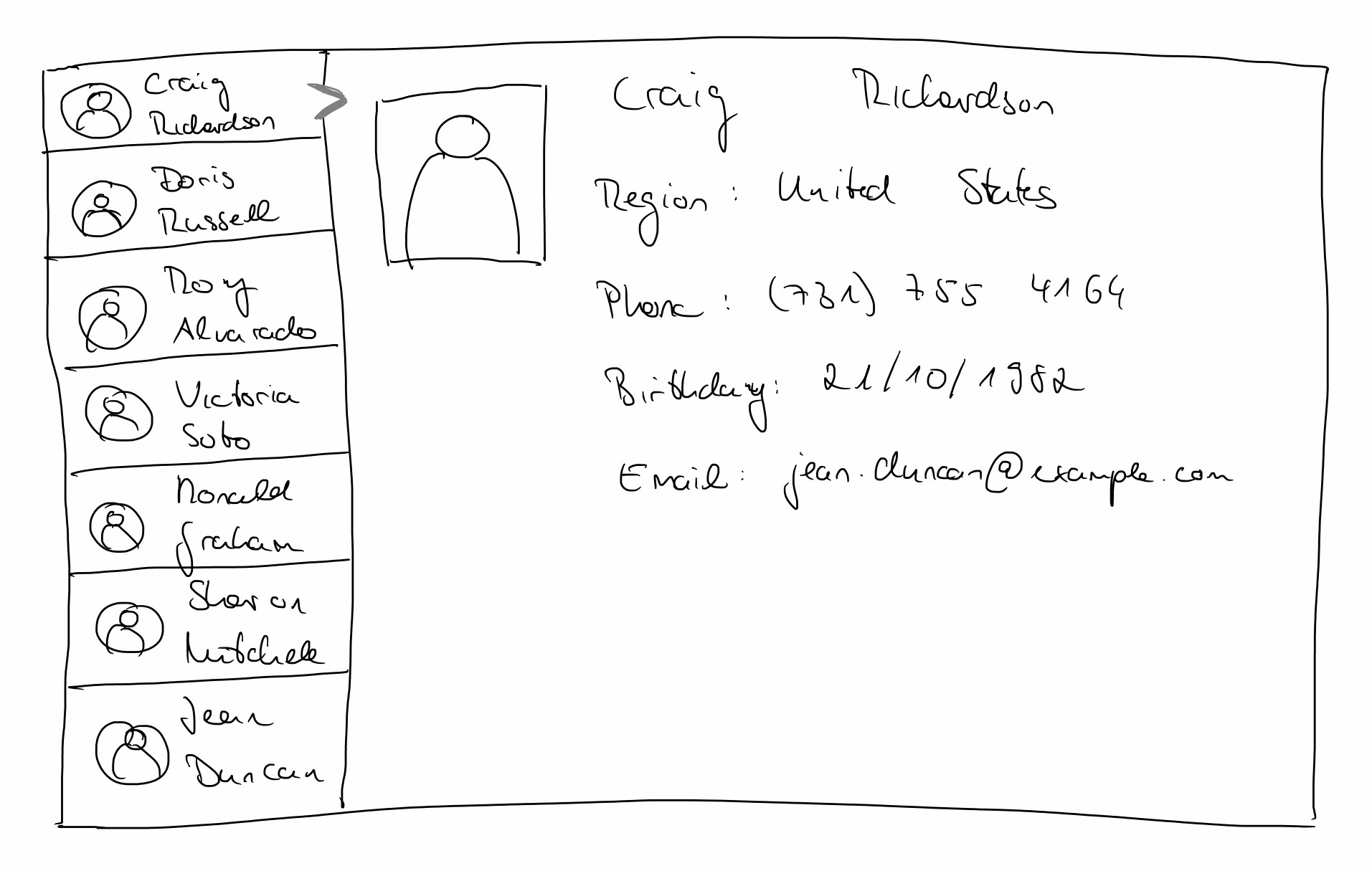 So, the client is roughly separated in two parts: a “list view” containing all contacts in an address book and a “detail view” containing all details belonging to a contact.