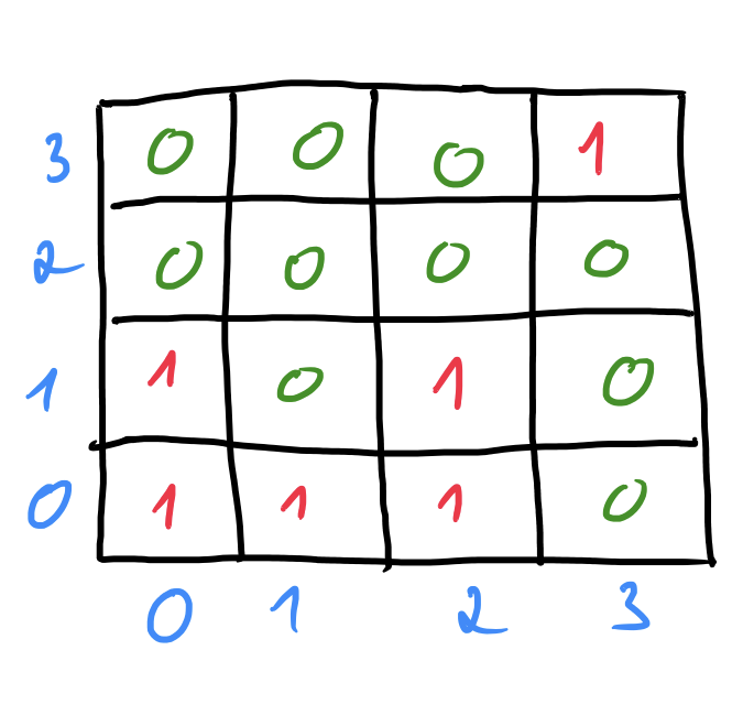 The new years first blog is about algorithms – more precisely: 2 dimensional matrices. I want to explore the ways how to find connected 1’s (so called islands) in a 2D array. This problem is also known as the “find the number of islands” or “connected components in an undirected graph“. In this post, we will explore traversing a 2D matrix.